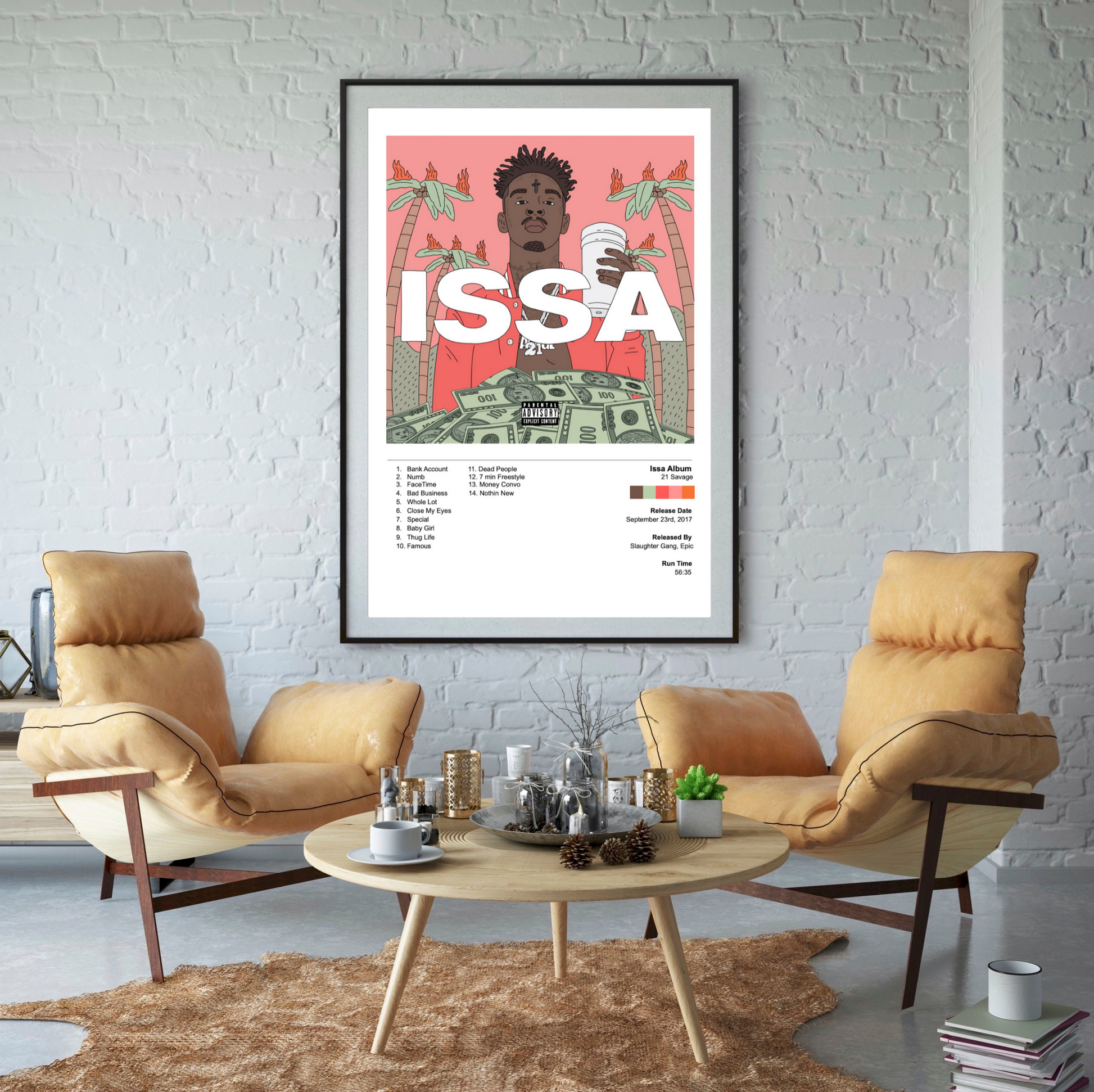 Issa Album is the debut studio album by rapper 21 Savage. It was released on July 7, 2017, through Slaughter Gang and distributed by Epic Records. The album features production from frequent collaborator Metro Boomin, alongside Southside, Pi'erre Bourne, Zaytoven, Wheezy, DJ Mustard and 21 Savage himself. It succeeds 21 Savage's collaborative EP with Metro Boomin, Savage Mode (2016).