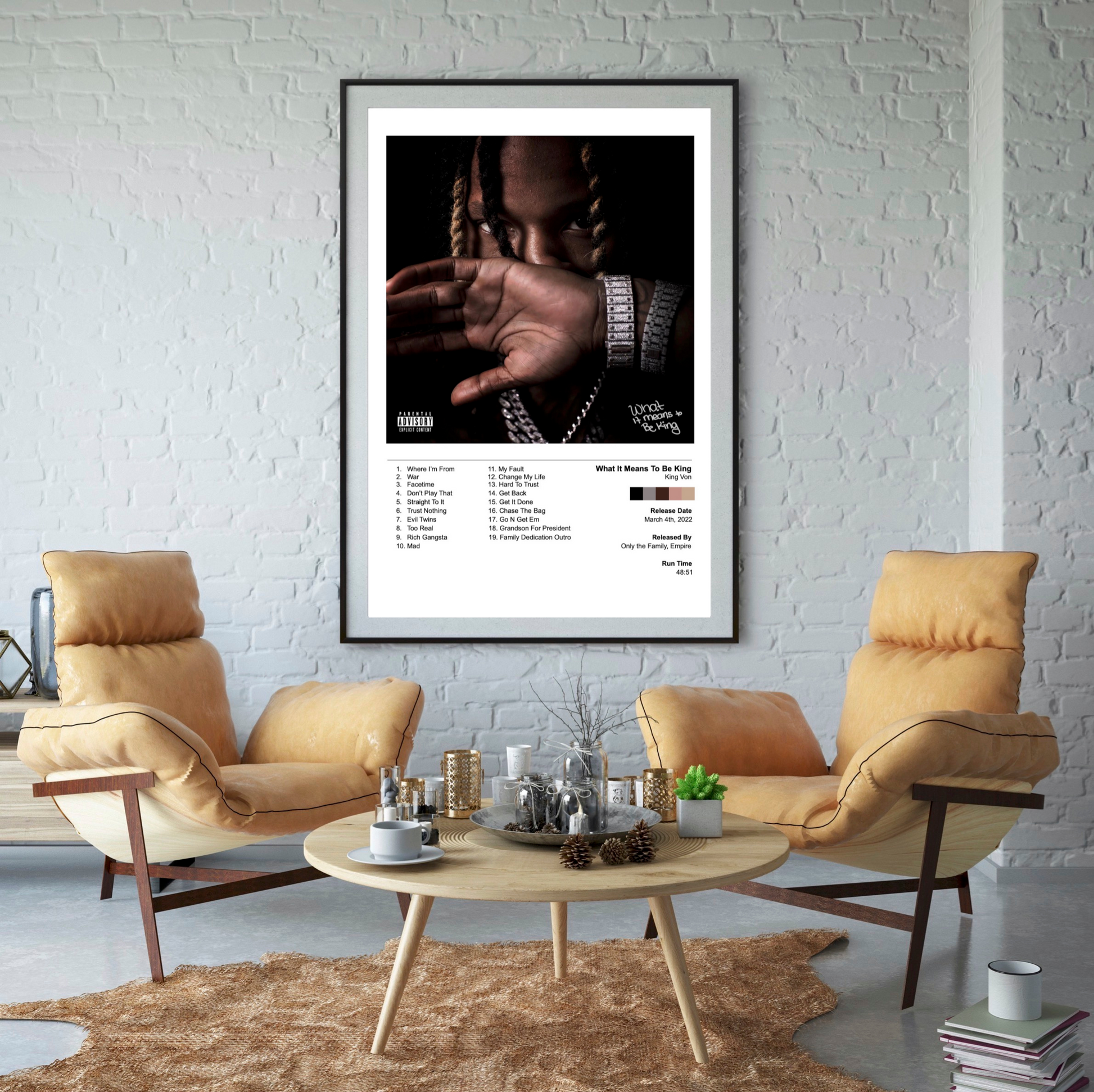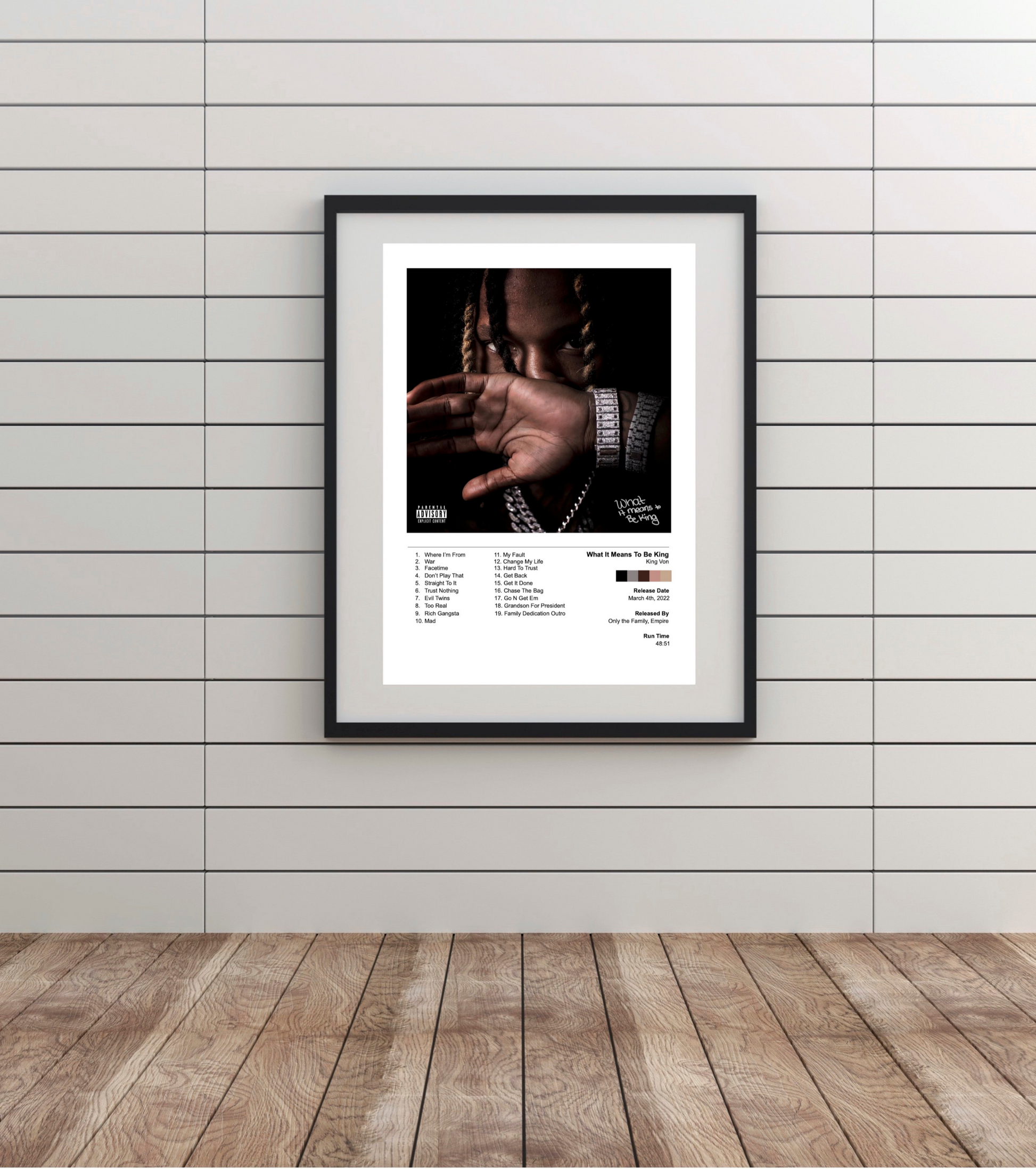 What It Means to Be King is the second studio album by American rapper King Von. It was posthumously released through Empire Distribution and Only the Family on March 4, 2022. The album features guest appearances from G Herbo, 21 Savage, Fivio Foreign, Moneybagg Yo, Lil Durk, Tee Grizzley, A Boogie wit da Hoodie, Dreezy, Boss Top, DqFrmDaO, and OMB Peezy. Production was handled by Chopsquad DJ, Hitmaka, Tee Romano, Kid Hazel, Touch of Trent, DJ Bandz, DJ FMCT, Glaazer, Diego Ave, Bankroll Got It, TM88, ATL Jacob, Geraldo Liive, CGM Beats, John Lam, and Raw Equity. The album marks Von's first posthumous project and serves as the follow-up to his previous album, Welcome to O'Block (2020).