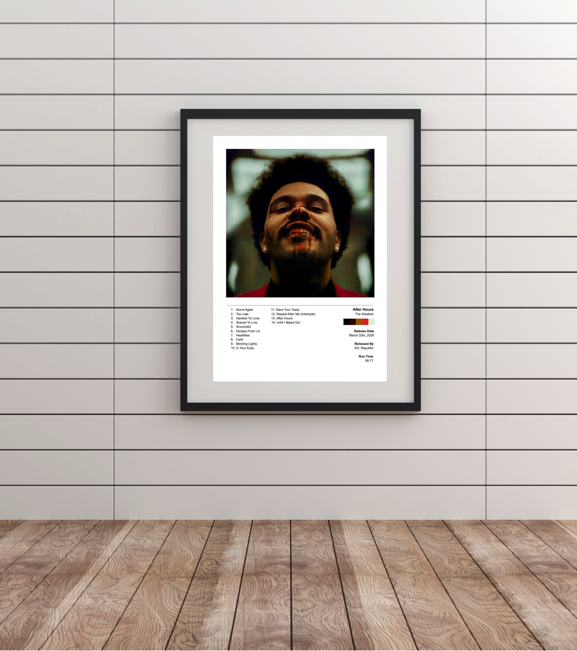 After Hours is the fourth studio album by Canadian singer-songwriter the Weeknd, released on March 20, 2020, by XO and Republic Records. Primarily produced by the Weeknd, it features a variety of producers, including DaHeala, Illangelo, Max Martin, Metro Boomin, and OPN, most of whom the Weeknd had worked with previously. The standard edition of the album has no features, although the remixes edition contains guest appearances from Chromatics and Lil Uzi Vert. Thematically, After Hours explores promiscuity, overindulgence, and self-loathing.