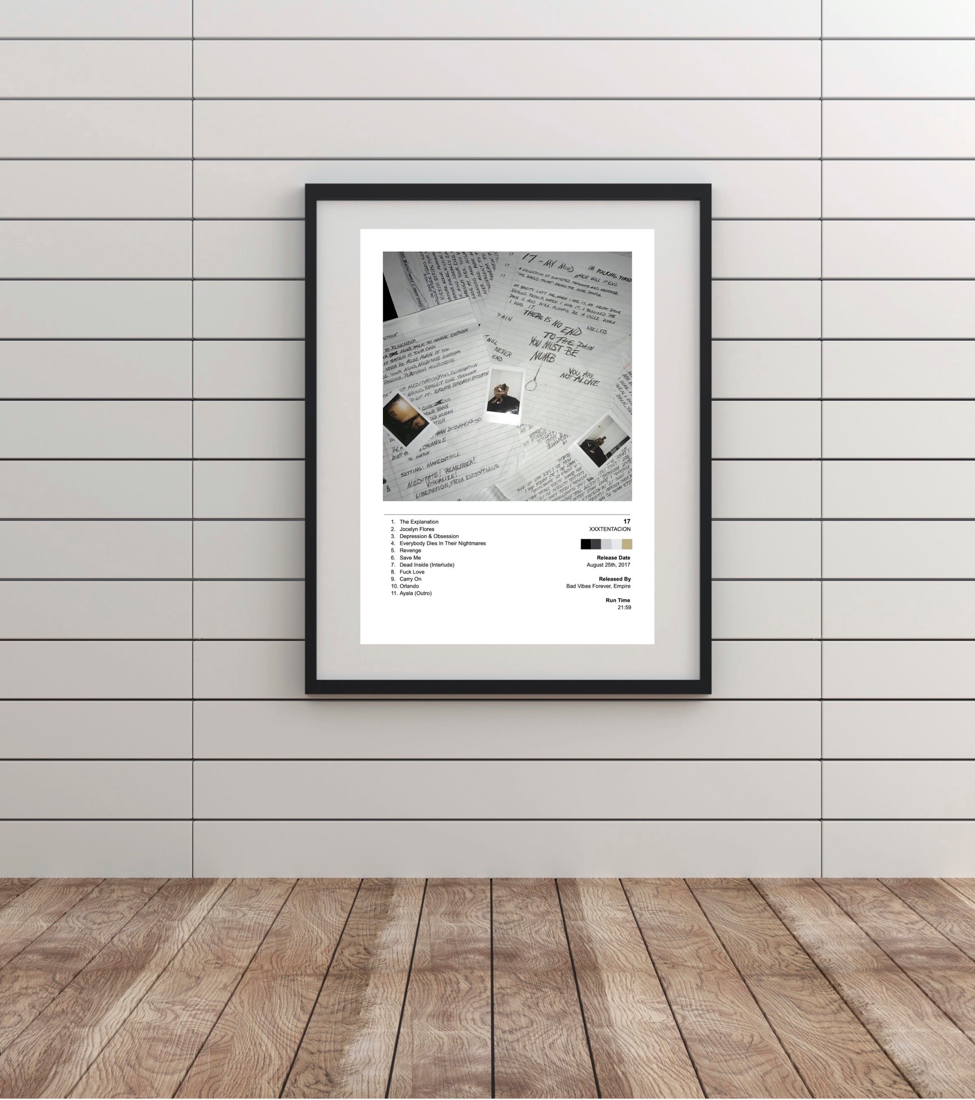 17 is the debut studio album by American rapper XXXTentacion.[5] It was released on August 25, 2017, by Bad Vibes Forever and Empire Distribution. With a total length of just under 22 minutes, the album is barely an LP, and does not feature a song longer than three minutes, which is considered unconventional for a studio album. The album was supported by the lead single "Revenge", and is XXXTentacion's second commercial record, following the compilation mixtape of the same name (2017). 17 includes a sole appearance from Trippie Redd and heavy sampling of Shiloh Dynasty, and production was handled by XXXTentacion, among others.